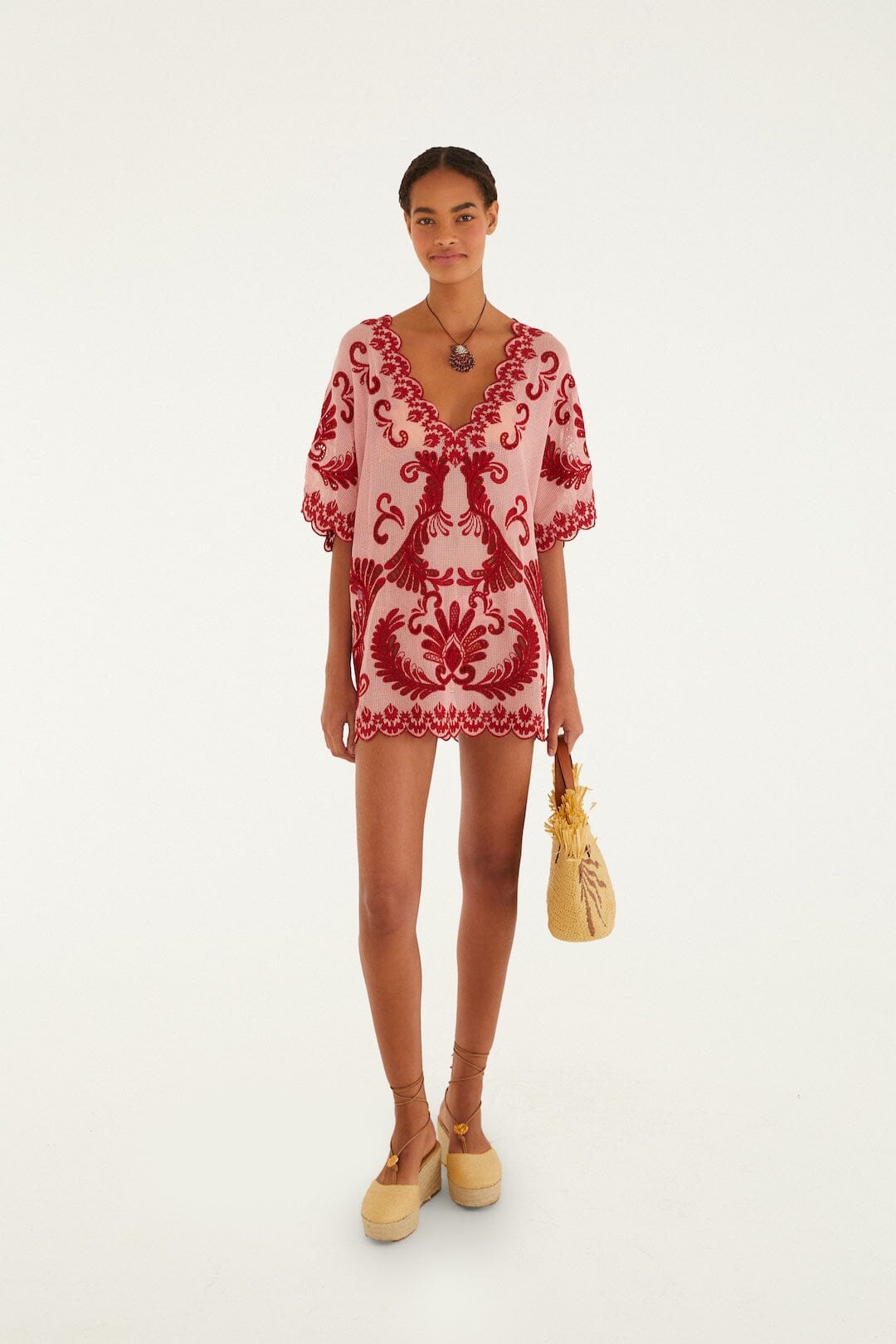 Embrace effortless charm with the Light Pink Arabesc Dress from FARM Rio. Bathed in soft, sun-kissed pink, this swimwear piece dances with delicate arabesque patterns that evoke tropical breeze and vibrant energy. Its flowy silhouette gently drapes the body, creating a graceful movement that feels like a warm embrace. Lightweight and breathable, this dress embodies playful elegance perfect for beachside days or sunset strolls by the water.