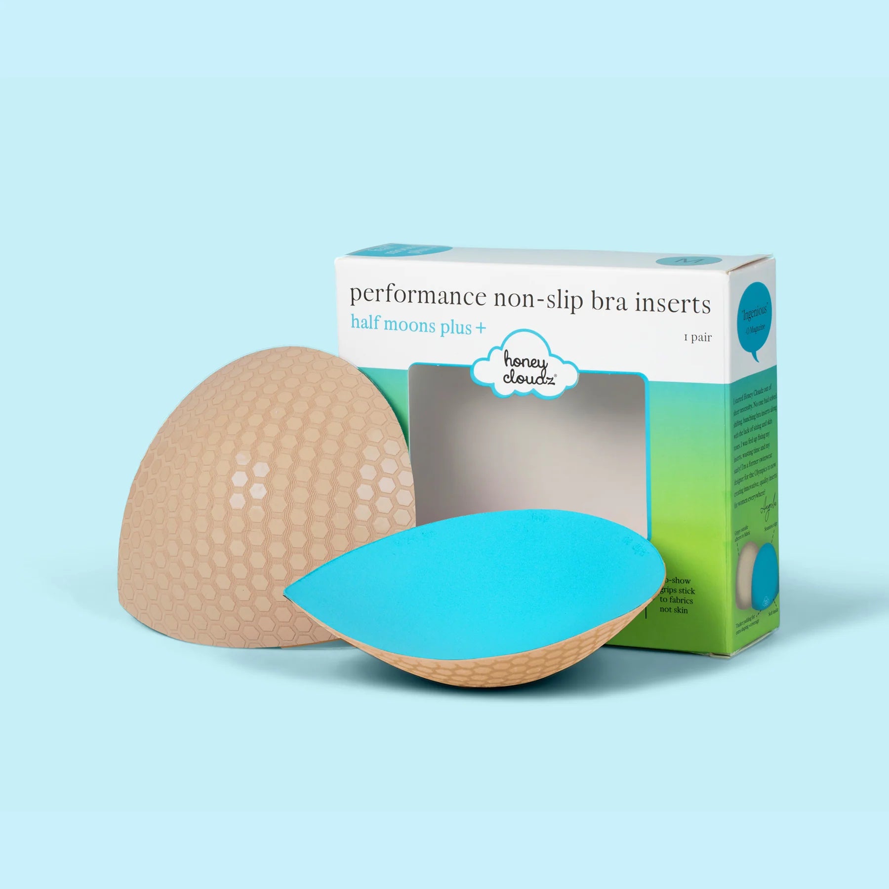 Our Half Moon Plus bra inserts are designed with double the thickness and shaping power of our original Half Moons, delivering medium-weight shaping, excellent coverage, and balance for up to ¾ cup difference.