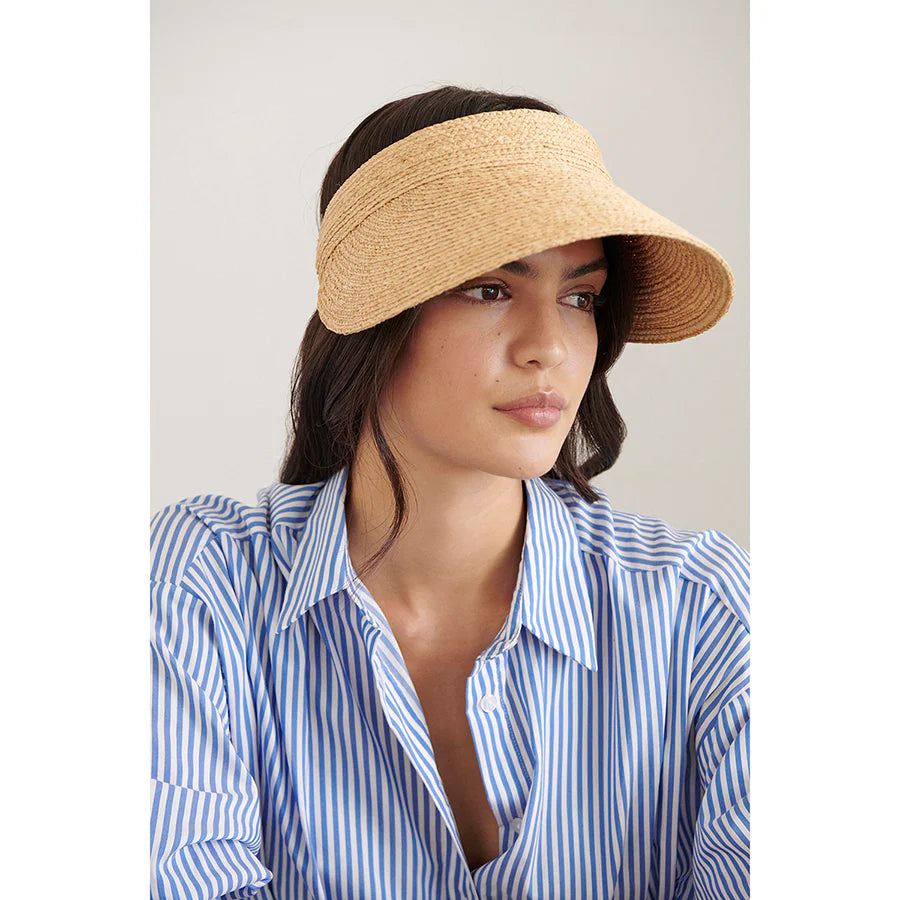 Delightful all year round, Kirsten is crafted from sustainably harvested, hand-braided Madagascan raffia. The style features a 12cm peak, inner neoprene band and size adjustable elastic fastening. Rollable and designed with a securing hook, Kirsten makes for the perfect casual off-duty travel or daily walk companion.