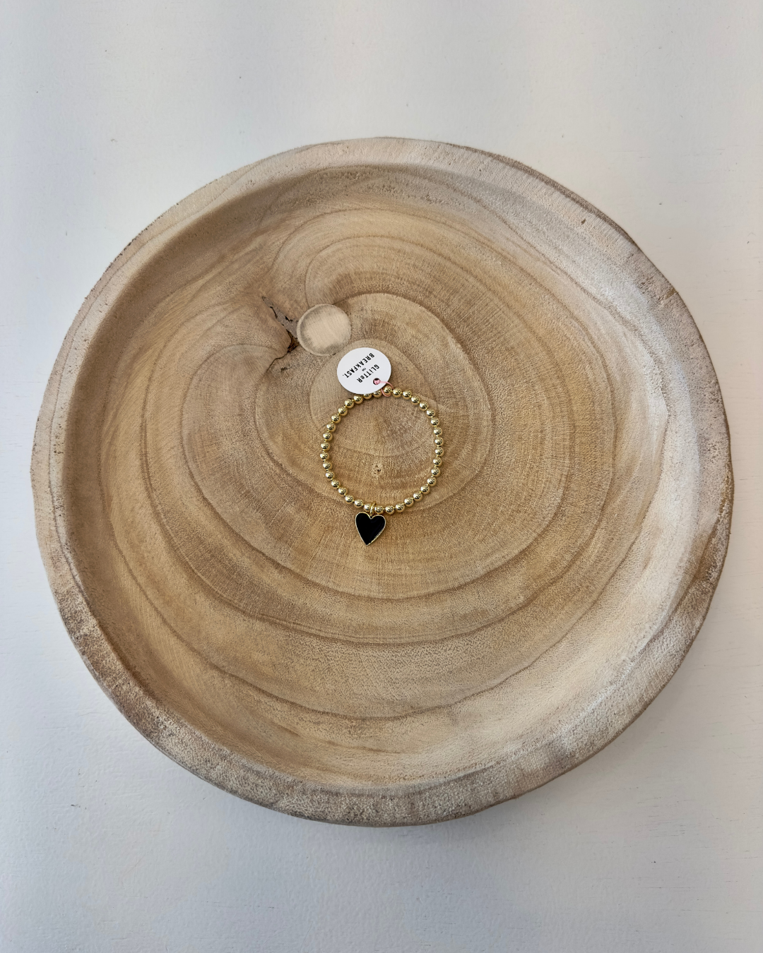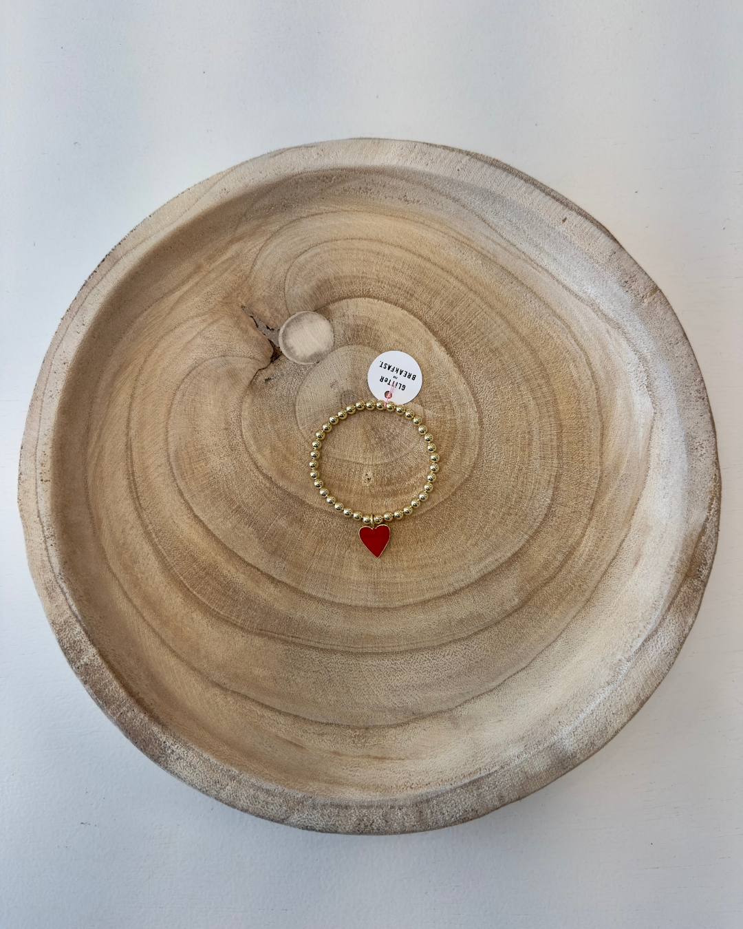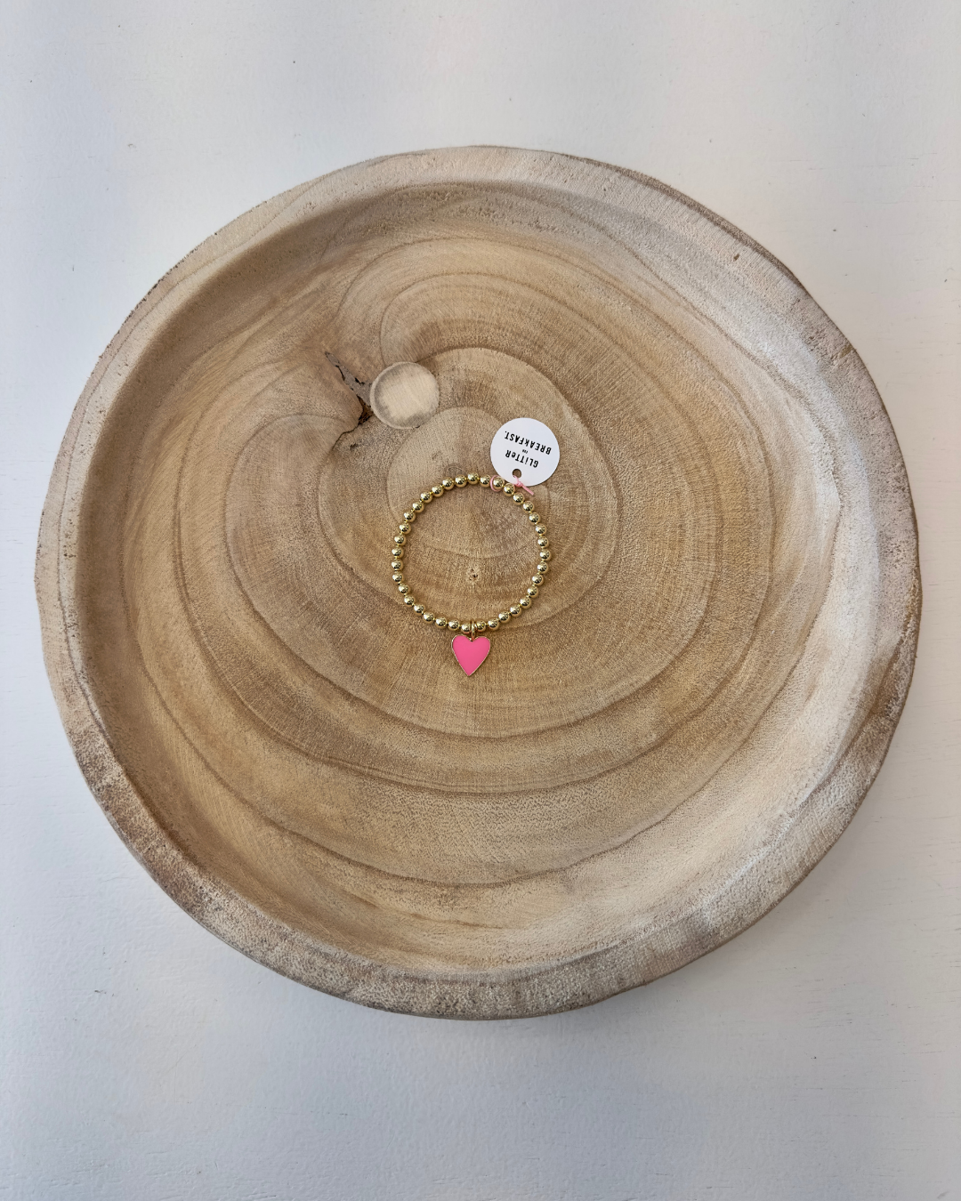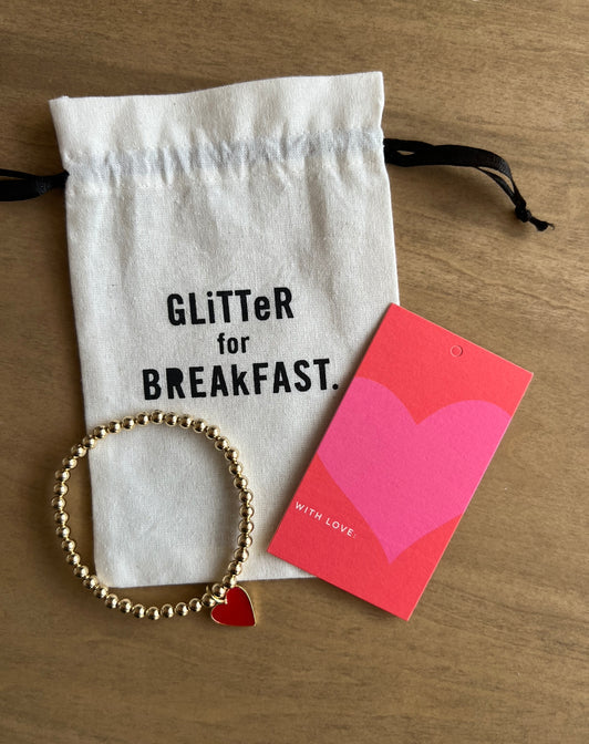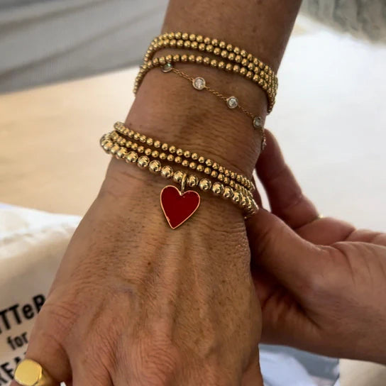 Please note: We recommend removing this bracelet before showering, swimming, sunbathing or exercising. Unlike the round 14k gold-filled beads on the bracelet which will not tarnish, the enamel heart charm is gold plated and may tarnish over time with exposure to chlorine, sunscreen and other environmental elements.