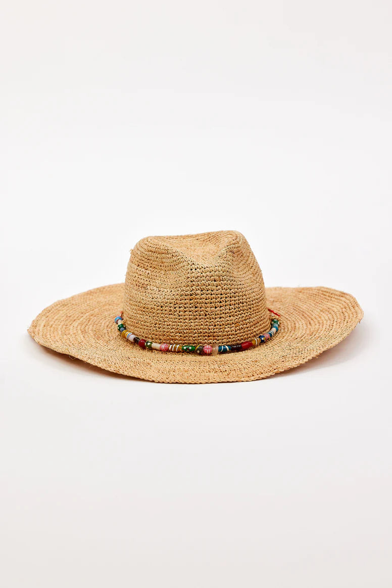 Our Millie Continental is a timeless hat made from lightweight woven raffia straw. It has a colorful bead trim. Built in SPF for added sun protection and comes with an adjustable sweat band for the perfect fit!