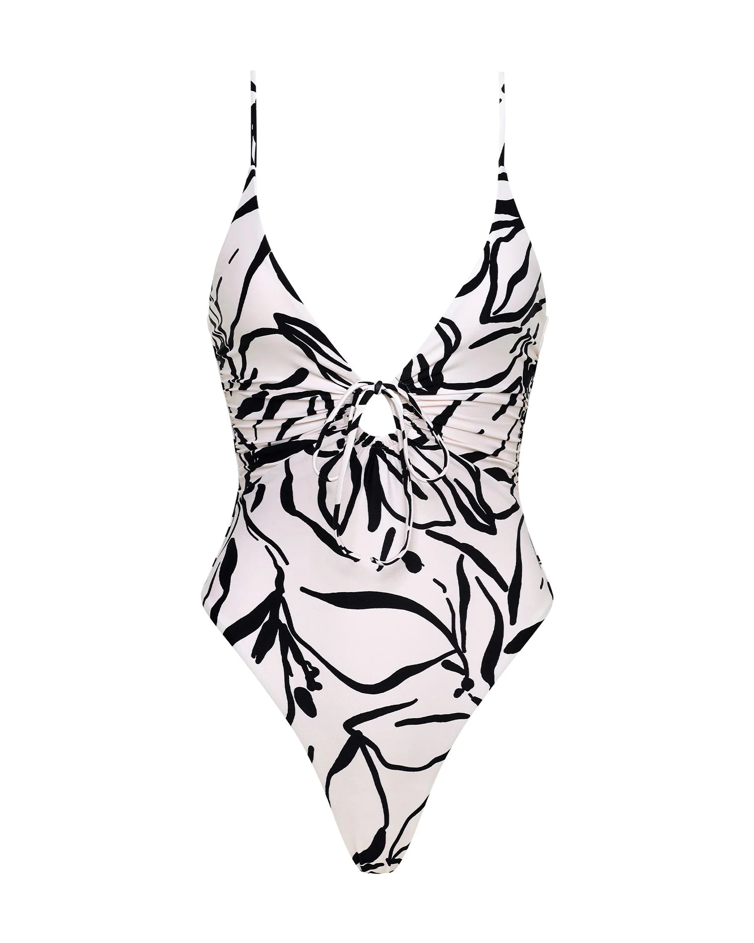 Reach peak perfection in the Piper One Piece. You get just the right amount of coverage with our classic fit combined with slim, adjustable straps. The detail is in the front of this suit with a deep-v, tie at bust, and keyhole cut-out. Want even more? We got you. This one doubles as a bodysuit and is here in our new bold abstract floral print, Heavy Petal.