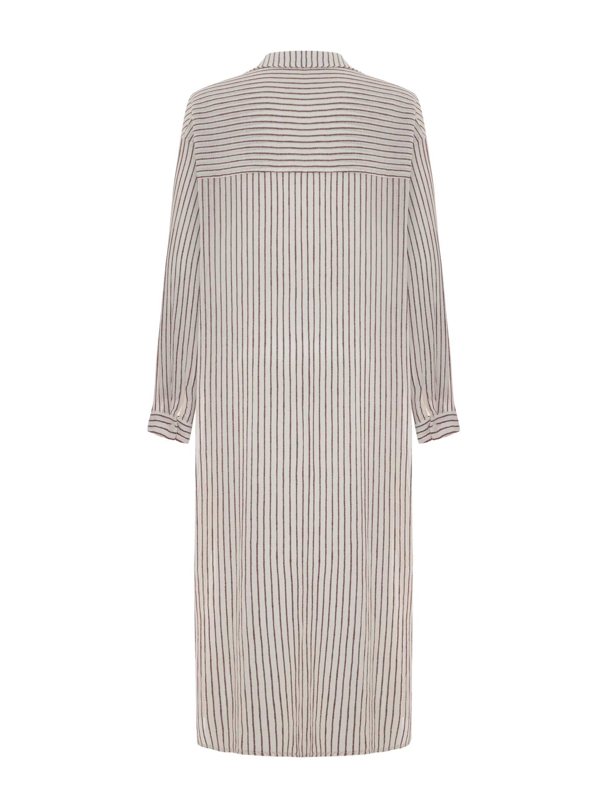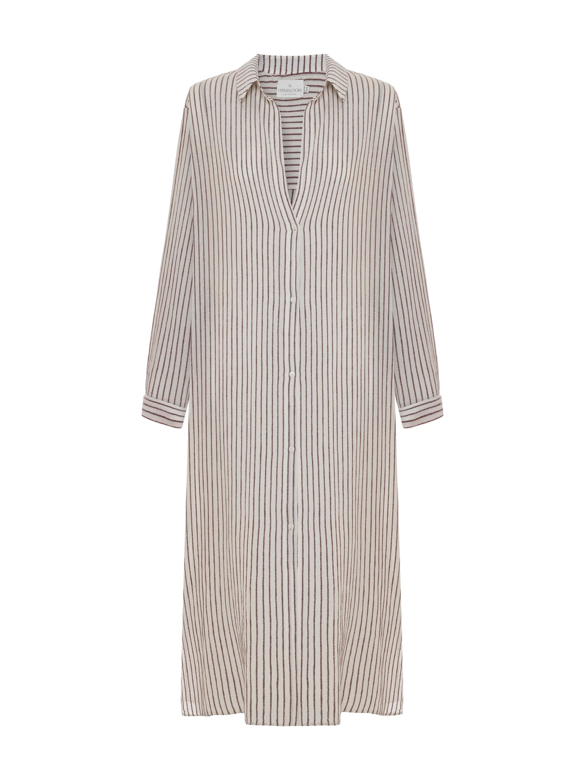 Featuring a button-down front and a relaxed fit, this versatile shirt dress offers effortless layering. Crafted from 100% Turkish cotton with soft, hand-loomed striped fabric, it can be worn open-front over swimwear or buttoned up as a chic beach cover-up. With a classic collar and rollable sleeves, it’s an essential addition to your summer wardrobe, perfect for beachside lounging or strolling through vacation days in style.
